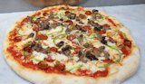 Broccoli, green peppers, onions, tomatoes, mushrooms, mozzarella & traditional sauce.