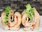 Homemade roasted beef, arugula, tomatoes, imported provolone, & homemade garlic aioli on focaccia Pressed
